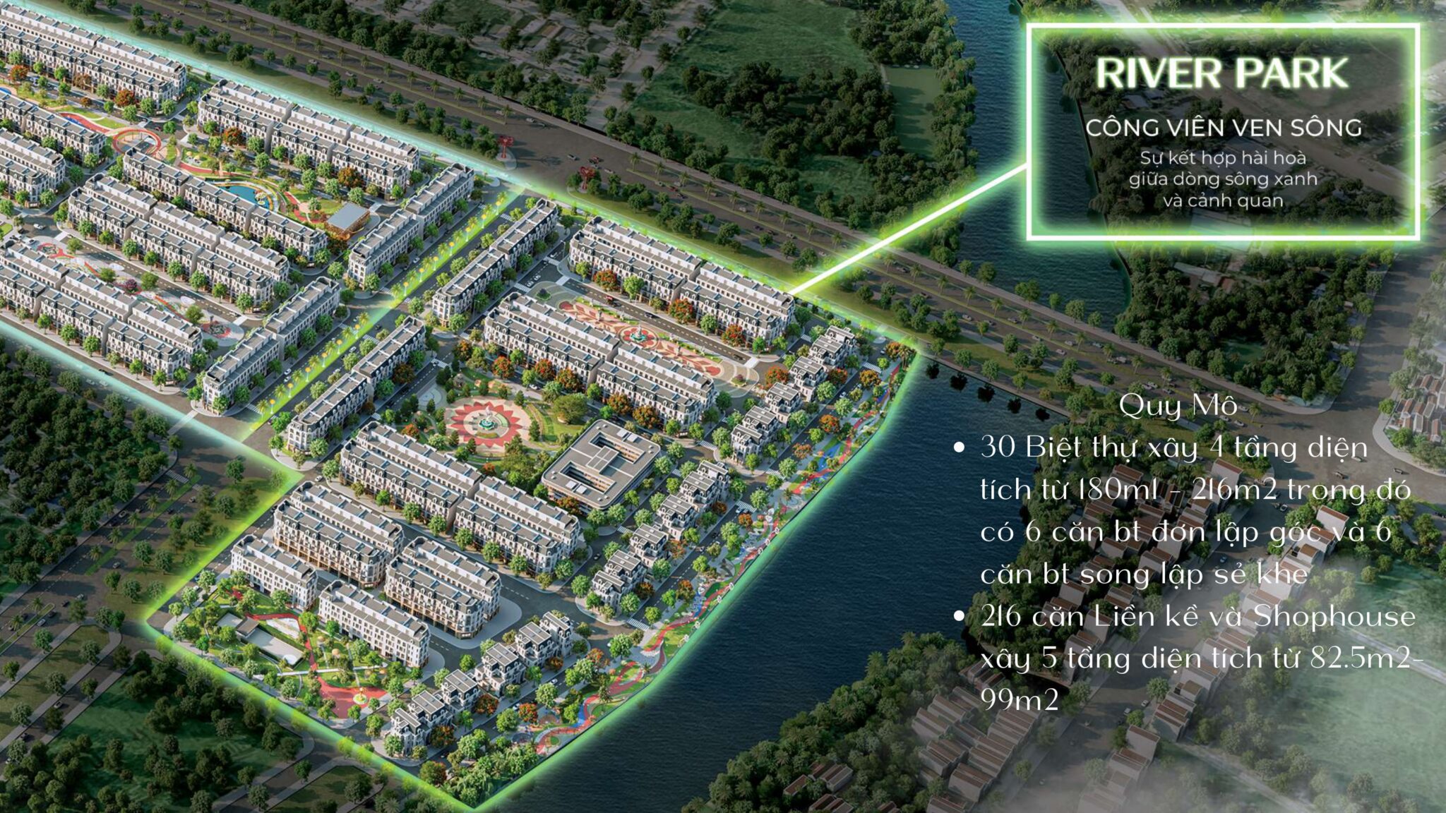 - Hệ thống nhà phố liền kề, biệt thự ven sông với thiết kế hiện đại, tối ưu công năng mang đến không gian sống đẳng cấp.