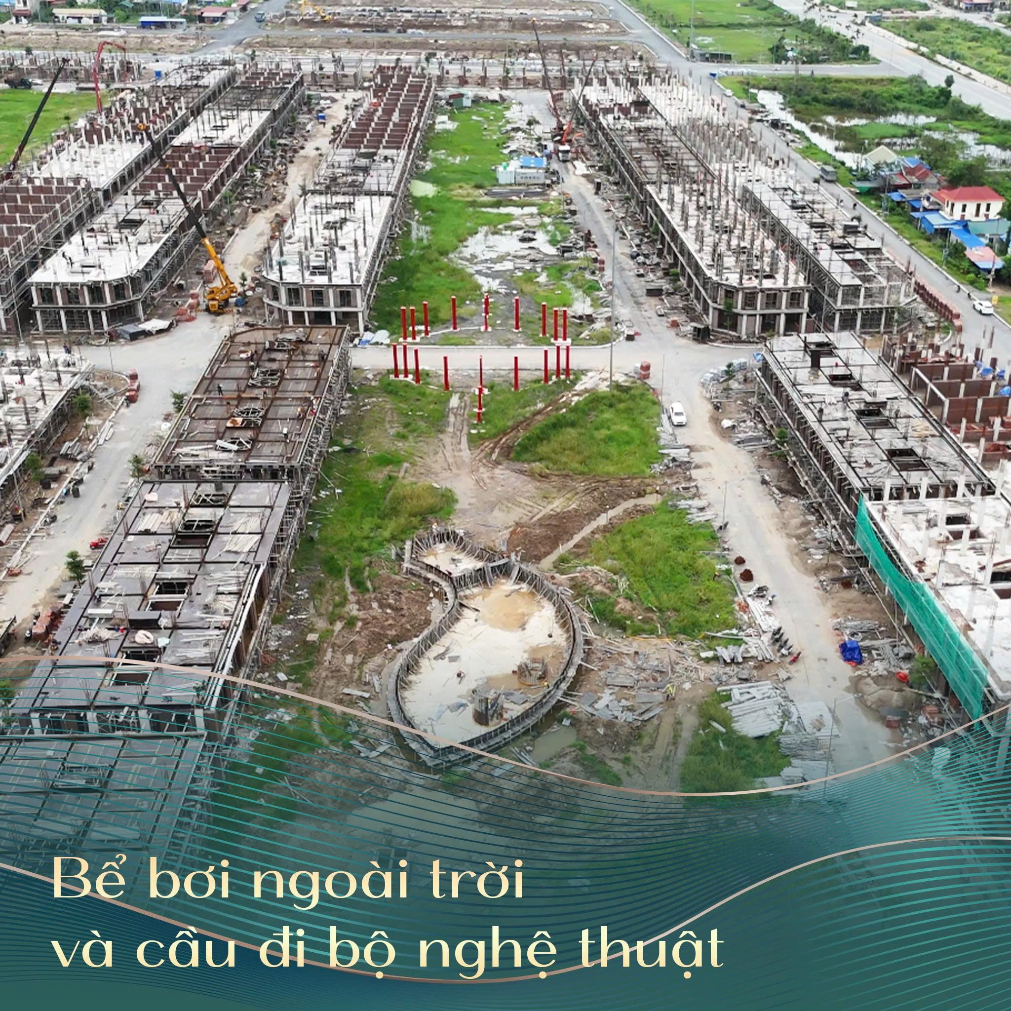 - Tiện ích công viên ven sông, cầu đi bộ nghệ thuật, bể bơi ngoài trời đang gấp rút thi công