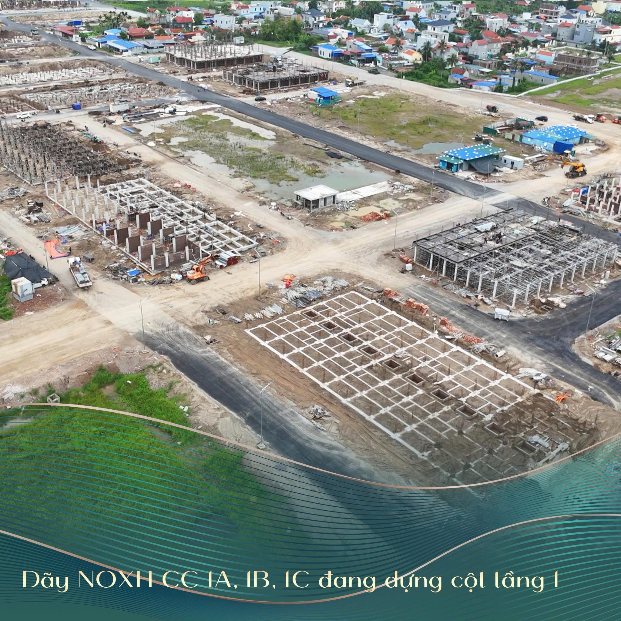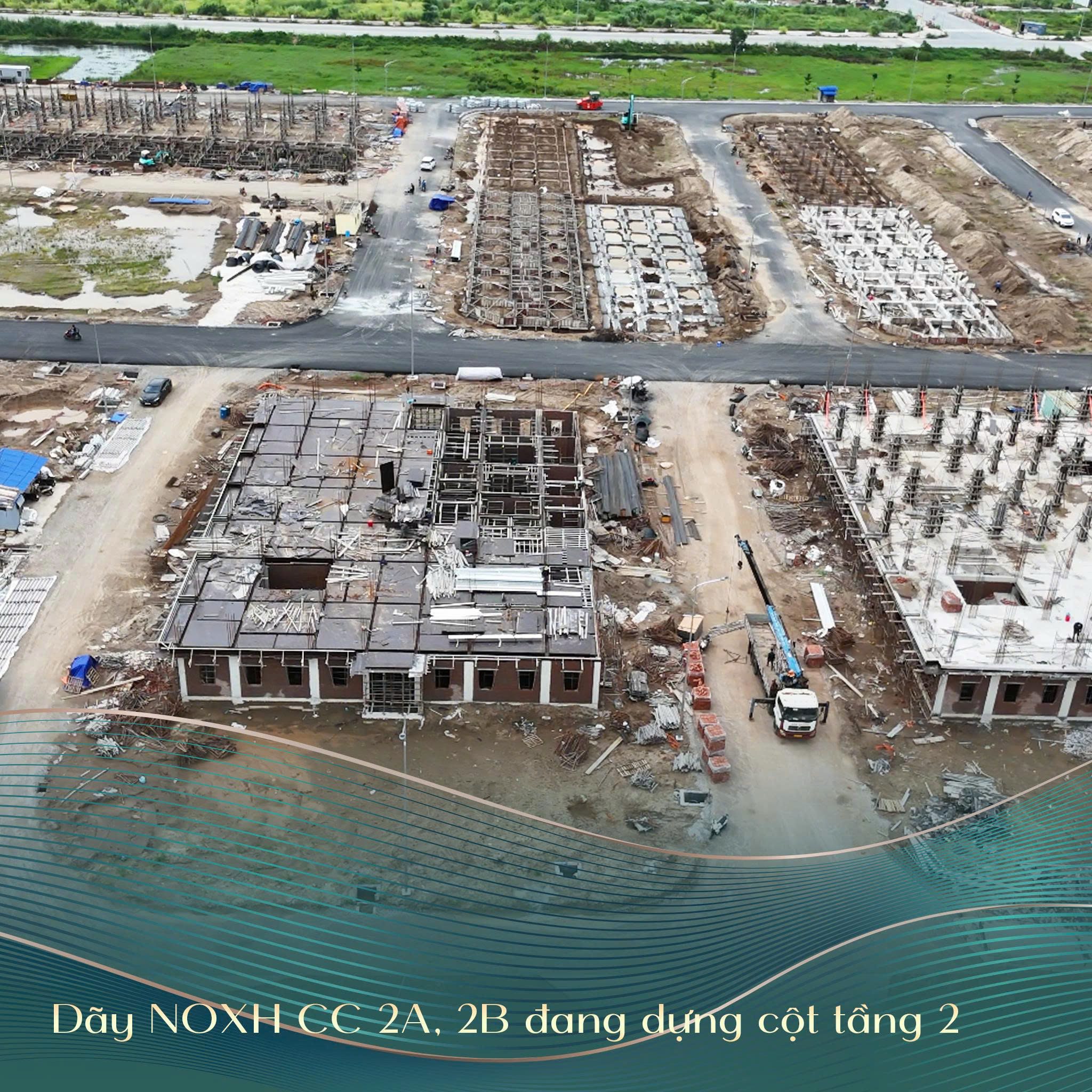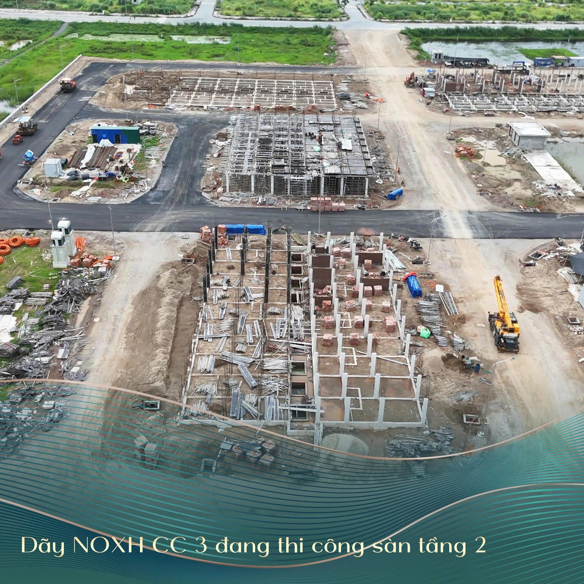 - Dãy NOXH CC3 đang hoàn thiện sàn tầng 1, CC4 đang dựng cột và xây tường tầng 1